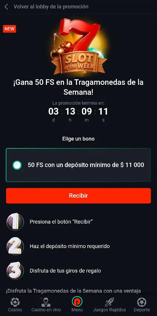 Condiciones del Bono Pin Up Tragamonedas de la Semana